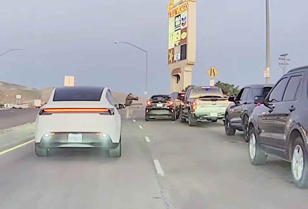 Dashcam footage from an eyewitness, broadcast by KCRA 3, shows three federal immigration agents surrounding Hernandez’s vehicle, one at his passenger side door and two attempting to open his driver’s side door, one with their gun drawn.