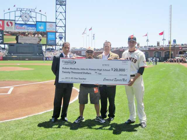 The Pitman High School community already knows how dedicated band director Ruben Modesto is to his students, but now his excellence in education is being recognized beyond Turlock as he was named the Comcast Sportsnet 2013 All-Star Teacher. Modesto was presented a $20,000 check at today's San Francisco Giants game.