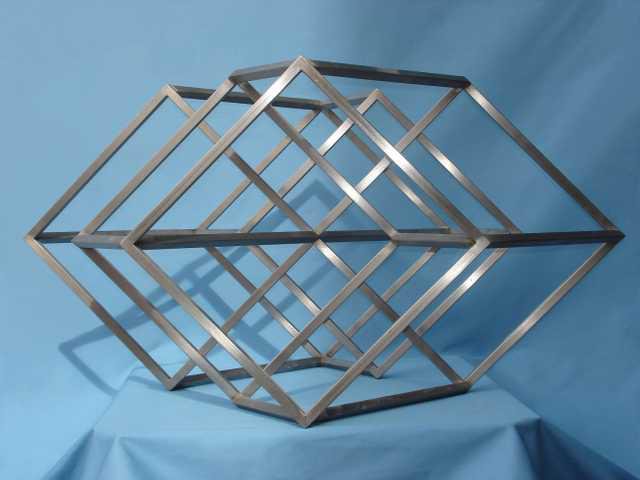 “For the past four decades my sculptures have dealt with the exploration of geometric forms,” states Duchscher. “During this time I have concerned myself with the element of line in defining these forms and its ability to create both actual and illusionary phenomenon. The use of linear parallels leads to an investigation of space causing the three-dimensional forms to appear two-dimensionally from certain points of view. I am concerned with these forms in their three-dimensional existence as compared to their two-dimensional aspects and illusionistic qualities. For me, my sculptures are visual experiences in themselves and are subject to change with both the environment and the observer.”