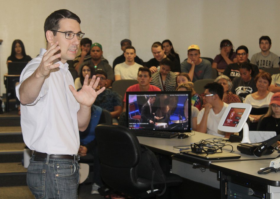 Harder began a campaign in July to host 16 town hall events throughout District 10 in the 16 weeks leading up to Nov. 6, registering voters along the way, he said. So far, Harder’s campaign has helped close to 1,000 people register in a district he says is home to around 130,000 eligible, unregistered voters. Of that 130,000, many are young voters who historically don’t register, he added, highlighting the importance of reaching out to populations like the students at Stanislaus State.