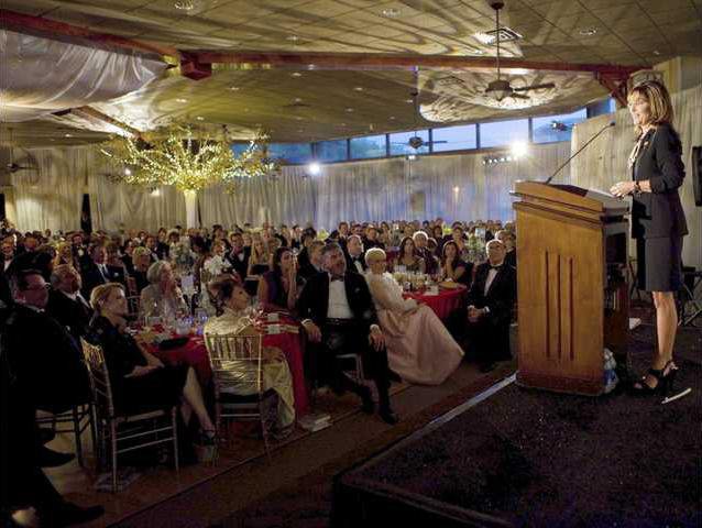 But while the meal was memorable – a caprese salad with heirloom tomatoes, seared scallops and savory mushroom risotto, and frozen chocolate soufflé – the highlight was Palin’s speech.