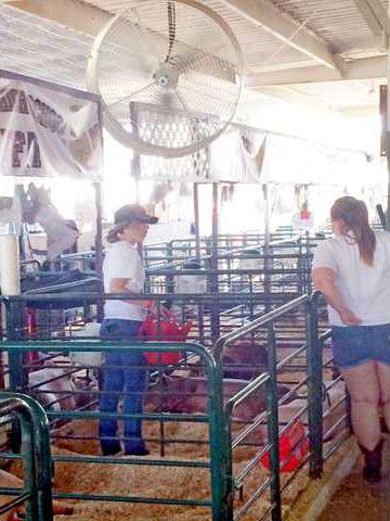 Haile and Womack, along with others showing pigs, help the animals stay cool by routinely misting them.