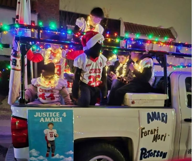 Joe Estrada, president of Ceres Jr. Bulldogs Football and Cheer, said he has been in constant contact with the Petersons since the news broke. Last Saturday, for the City of Ceres Christmas Tree Lane Parade, the family and members of the Bulldog community decorated the group’s float as a memorial to Amari.