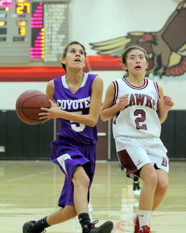 Denair High’s girls led Southern Athletic League rival Delhi High for the entire first half of Thursday’s basketball game, but with one quarter left to play the situation seemed dire for the Coyotes. After struggling to contain Denair’s offense, the Hawks closed the gap on the Coyotes and pulled away with a 13 point lead.